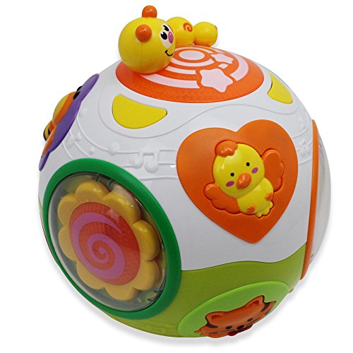 HOW IT WORKS-The various animal-shaped buttons can be easily pressed to make the corresponding animal sound-plus bonus sounds and silly songs included! The lights and rattles on the sides make it even more fun for your little one to enjoy. Just when you thought the vibrant colors and fun buttons were enough; put the ball on the ground to watch it roll around! Your child won't be able to help but chase it around for endless fun!