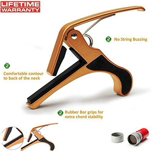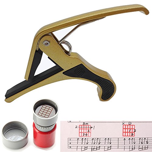 Onemax Guitar Capo with Common Chord Stamp for Folk Acoustic Electric Guitar Banjo and Ukulele (Gold)