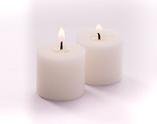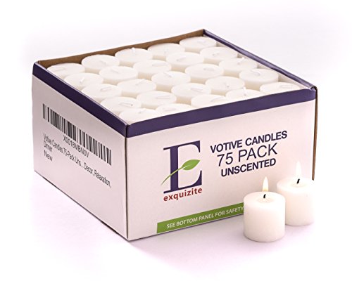 Bulk Unscented White Votive Candles FOR YOUR SPECIAL OCCASIONS such as DINNERS or JUST RELAX with your FAMILY: Improves decor, Burns clean, No smoke! PACK SIZE of 75 unscented white votive candles; LONG LASTING 10-12 Hour Burn Time DIMENSIONS 1.5" diameter, 1.5" height USE WITH CANDLE HOLDERS Fits perfectly into small, medium or large votive candle holders HIGH QUALITY WICKS Made from 100% high-grade cotton; Lead-Free; Raw wicks are coated with a blend of waxes to ensure proper smokeless burning, high performance with no scent BACKED BY OUR WARRANTY Manufacturer's warranty with every purchase! 0