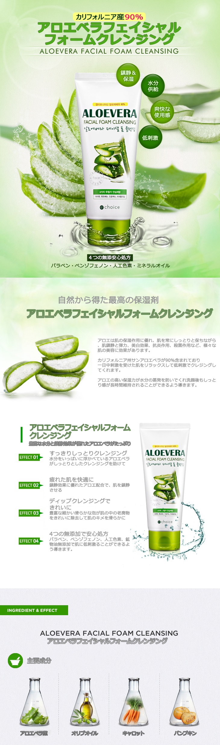 アロエの高い保湿力が水分の蒸発を防いでくれ洗顔後もしっとり感が長時間維持されることができるよう導きます。