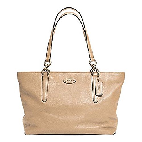 -. Feature : Leather / Inside zip, cell phone and multifunction pockets / Zip closure, fabric lining / Handles with 9 drop / 13 (L) x 9 3/4 (H) x 5 (W)