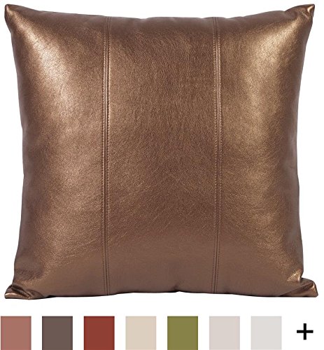 Change up color themes or add pop to a simple sofa or bedding display by piling up the pillows in a multitude of colors, textures and patterns. This Shimmer Pillow features a metallic bronze color and a paneled design to give the look of true leather. Made of 100% polyurethane. Overall Product Dimensions: 16-inch by 16-inch. The high-style design and high-end materials in the pillows are what set Howard Elliott apart from the competition. Howard Elliott's innovative product line is carefully designed and packaged to ensure low damage rates for their high quality and custom items. Made in the USA. Howard Elliott has been redefining the home furnishing and hospitality industry with innovative designs of decorative mirrors, accessories and occasional furniture since 2001. Lifestyles change the way we live and Howard Elliott's mission is to create exceptional products which truly finish a room. Howard Elliott distinguishes itself from the competitors with the effortless adaptability of their product line. Versatility, style and customization are just a few of the features built into every item produced. Howard Elliott's Chicago-land and international manufacturing facilities take pride in hand-crafted, quality construction. Howard Elliott is constantly refreshing their look with new finishes, fabrics and designs to keep ahead of the game. With everything they offer, Howard Elliott is sure to be your most valuable accessory and occasional furniture resource.Feature