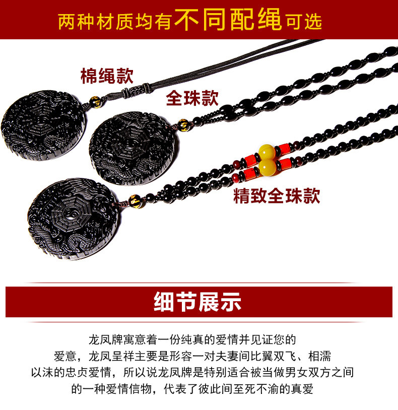 金曜石黑曜石龙凤牌太极八卦吊坠男士项链女款项坠开光五行护身符