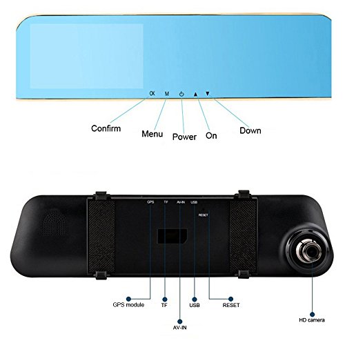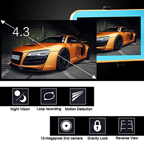 Kregis Full HD 1080P 4.3'' Rearview Mirror Dash Cam with Car Recorder and Reverse Parking System, Car Rear View Backup Camera