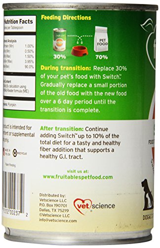 -. Title : FRUITABLES 953005 FRUITABLES Switch Food Transition Pumpkin Supplement for Pets, 15-Ounce