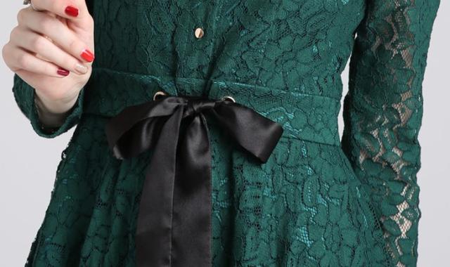 正面に大きなりぼんベルトは女性らしさアップ