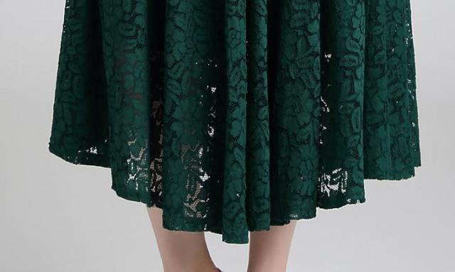 表面感のある刺繍レースが上品な印象のドレス。