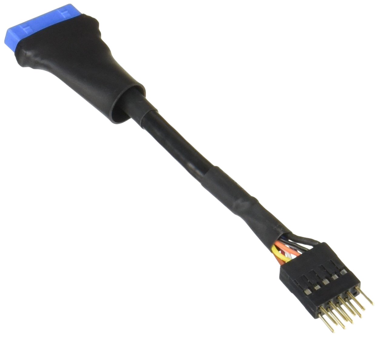 It is a cable that converts the USB 3.0 pin header terminal (20 pin) on the motherboard to the USB 2.0 pin header terminal (10 pins × 2 ports).