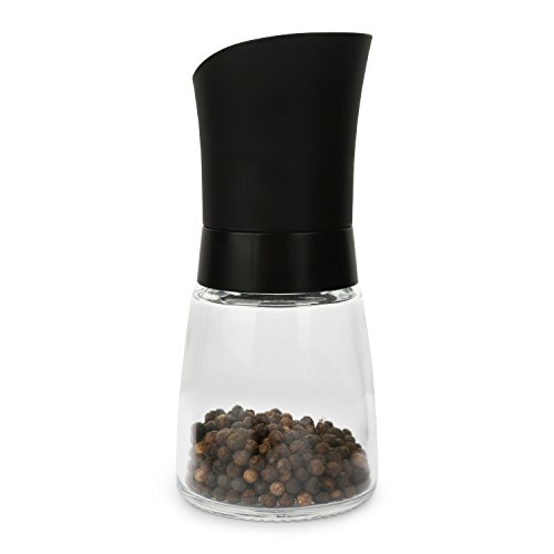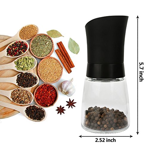 Ceramic Pepper Grinder, Pepper Shaker, Manual Pepper Mill with Adjustable Ceramic Rotor and Glass Bottle (Black)