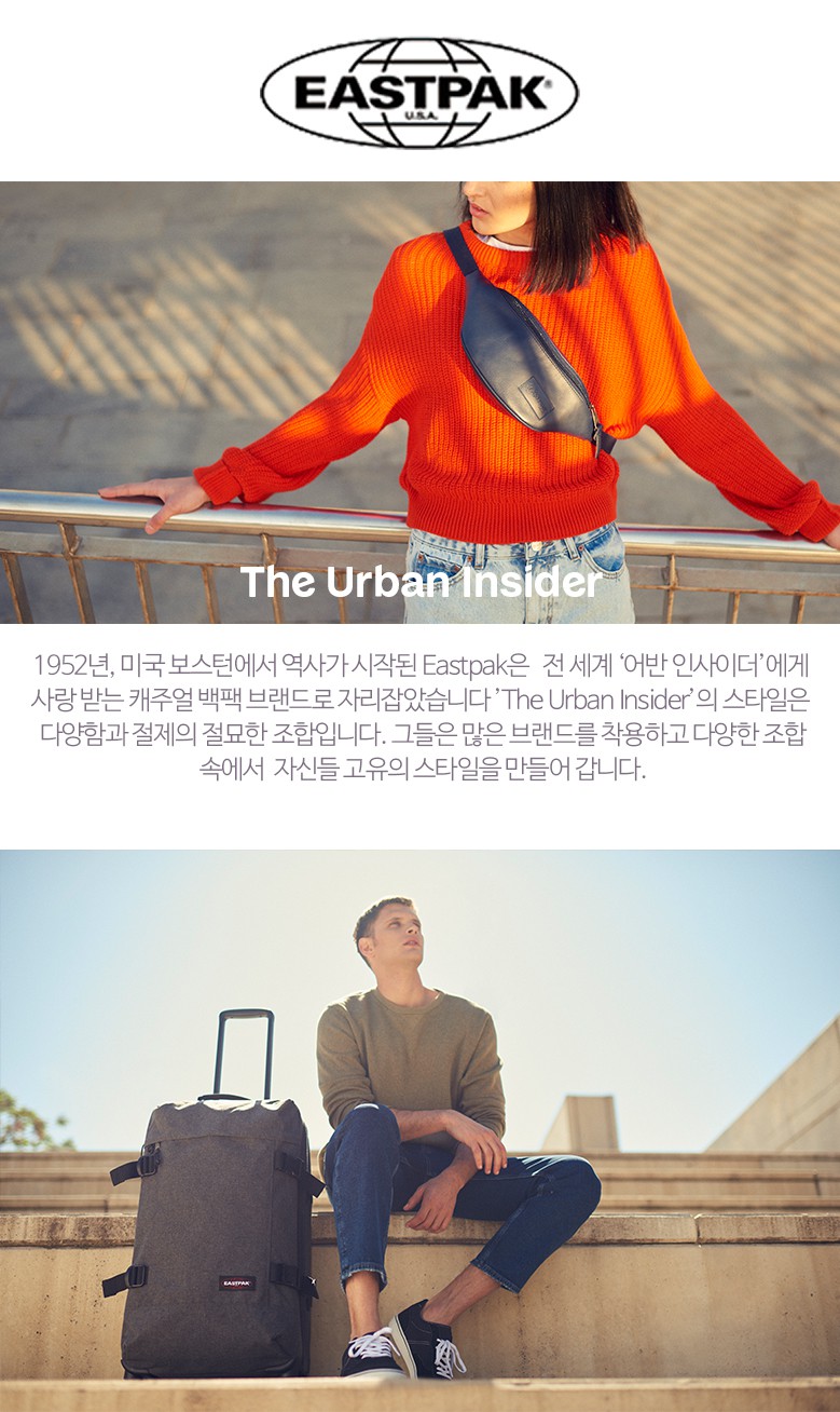 총 3개의 수납공간을 가지고 있는 이스트팩의 베스트 오브 베스트 대용량 데일리 백팩입니다. 앞쪽의 전면포켓에는 다양한 기능성 오거나이저들과 탈부착 가능한 열쇠고리가 달려있어 펜, 수첩, 동전, 열쇠 등을 깔끔하게 정리, 수납할 수 있으며 메인 수납공간은 널찍한 사이즈로 랩탑슬리브가 있어, 많은 짐과 노트북을 휴대해야 하는 학생이나 직장인들에게 유용한 백팩입니다. 양측면에 달린 스트랩들은 가방의 부피 조절을 가능하게 하여 내용물이 적을 시에도 적당한 사이즈로 패셔너블한 연출이 가능하게 합니다. 상단의 손잡이는 플라스틱으로 처리를 해 고급스러움을 더했고 그립감이 좋습니다