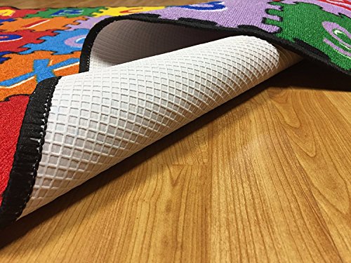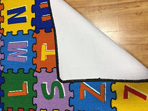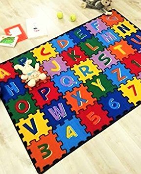 ABC PUZZLE kids educational rugs and kids puzzle mats are ideal for daycare centers, pre-schools, nursery schools, kindergarten classrooms, childcare centers, children's bedrooms and playrooms. Teach your little one their ABC's with this fun Puzzle Alphabet Rug. Bright & Vivid Designs, Colors & Details! Made of 100% High Quality Soft Nylon Loop Pile comes equipped with Non-Slip Backing and Thick Cushioned "Gel Backing" For Extra Comfort Whether you're a mom or a dad, a teacher or a daycare worker, our kid's rugs and puzzle mats are the perfect way to add to color to a room and for kids to simply have fun. Stimulate creative playtime and accent your kid's room or make a bold statement in your nursery with a rug from this collection. Thank you for your visit, HANDCRAFT RUGS.Feature