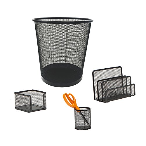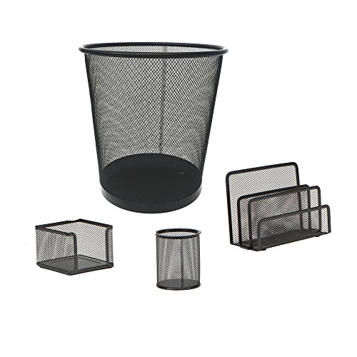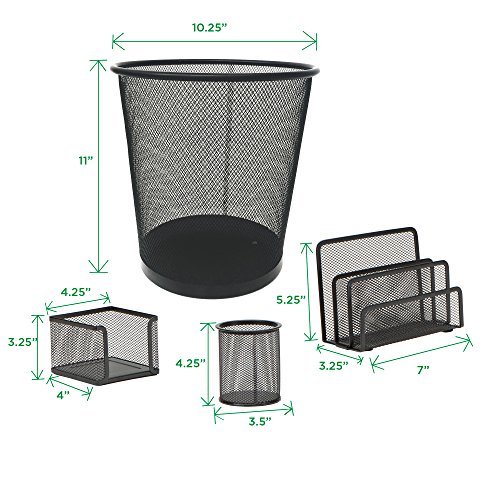 Mind Reader 4 Piece Desk Organizer Set, Pencil Holder, Letter Tray, Supply Organizer with Trash Can