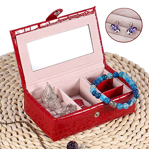 Portable Travel Jewelry Box Case Organizer Holder with Mirror Used to Storage Ring Earring Necklace Bracelet Bracelet Hair Clip Clamps Cosmetics, Exquisite...