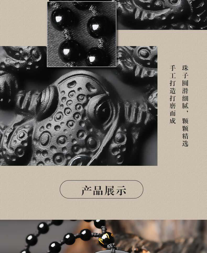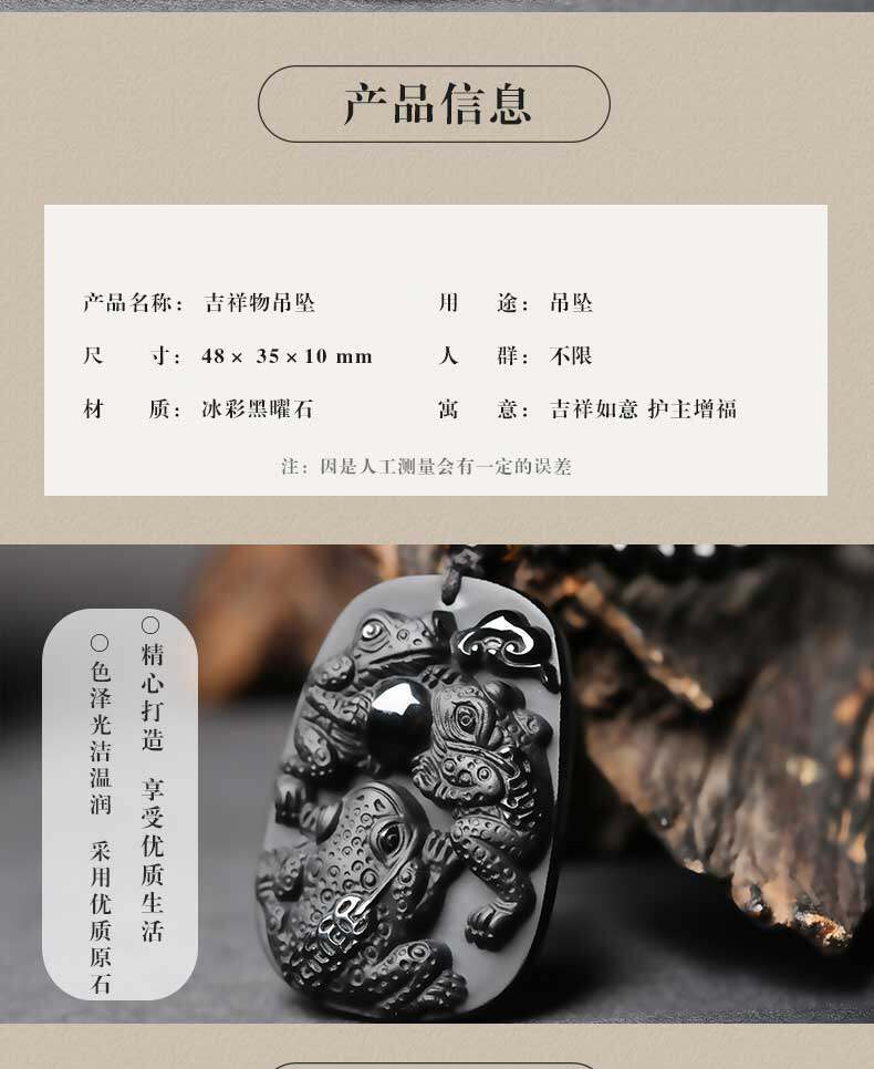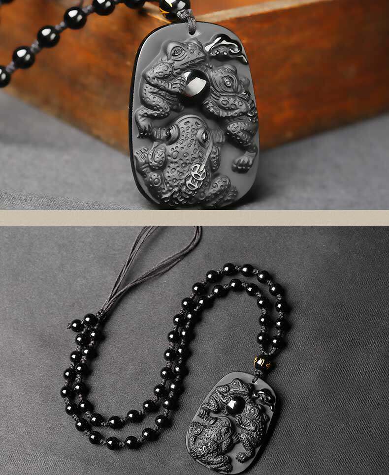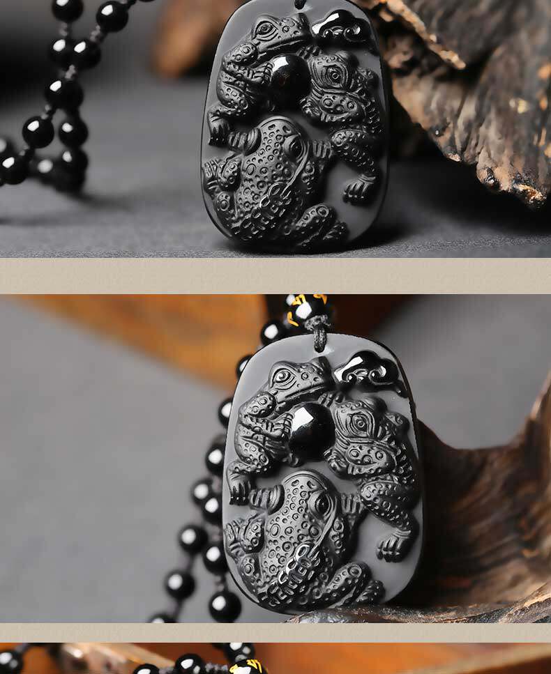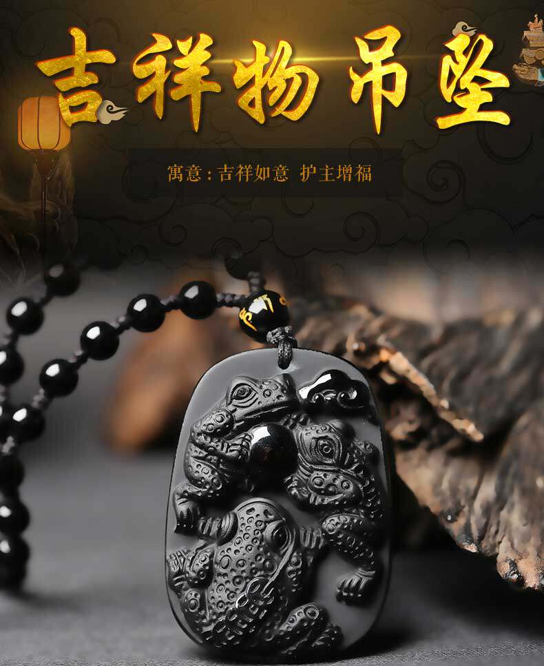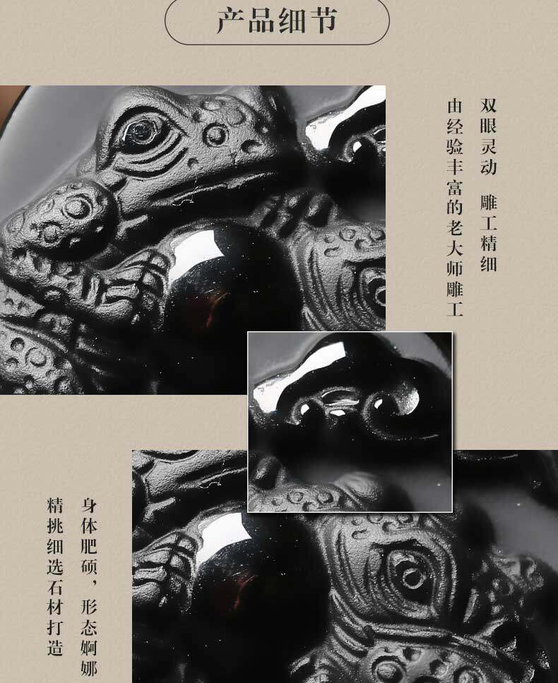 开光 三蟾赐福吉祥物吊坠金蟾保泰黑曜石三足金蟾三蟾赐瑞