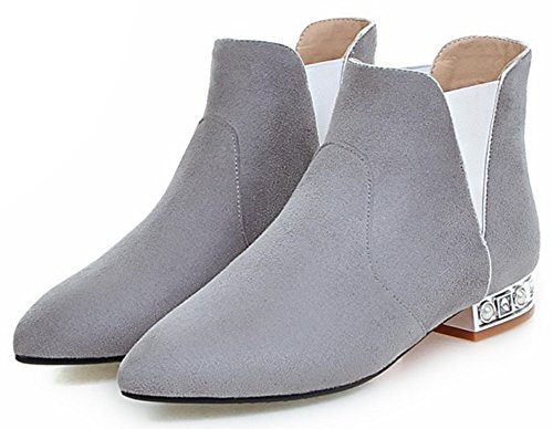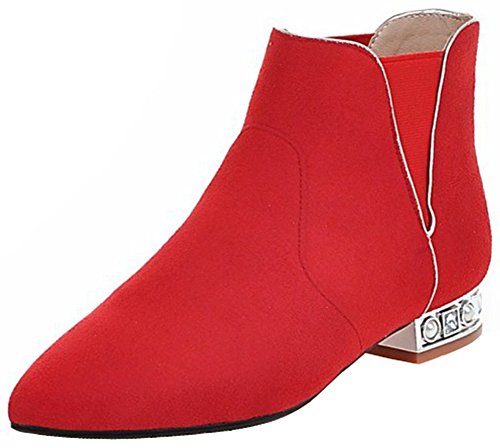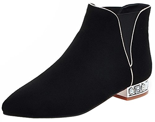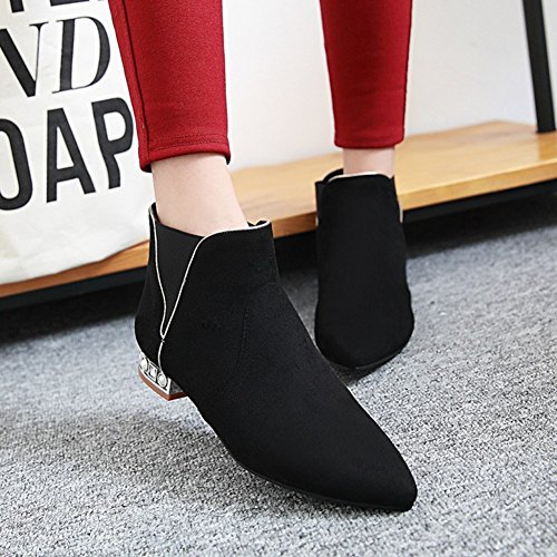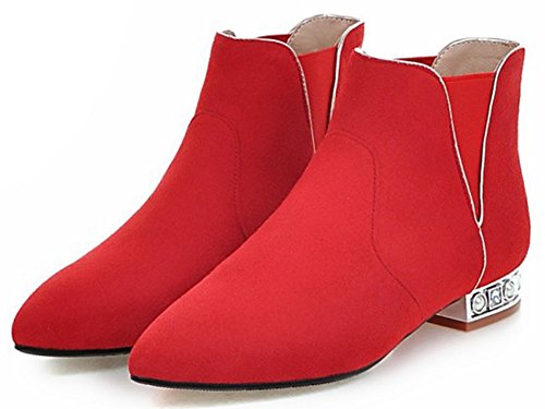 (Mofri)/Women's/Boots/DIRECT FROM USA/Mofri Women's Dressy Elastic Block Low Heel Ankle Booties Pointed Toe Faux Suede Pull On Short Boots