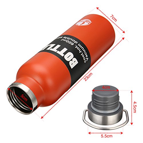 10-24 HOURS OF INSULATION: It keeps cold drinks cold for 10 hours or hot drinks hot for 24.A screw-top lid keep water no leaking, you can carry the bottle around all day in our gym bag without worry