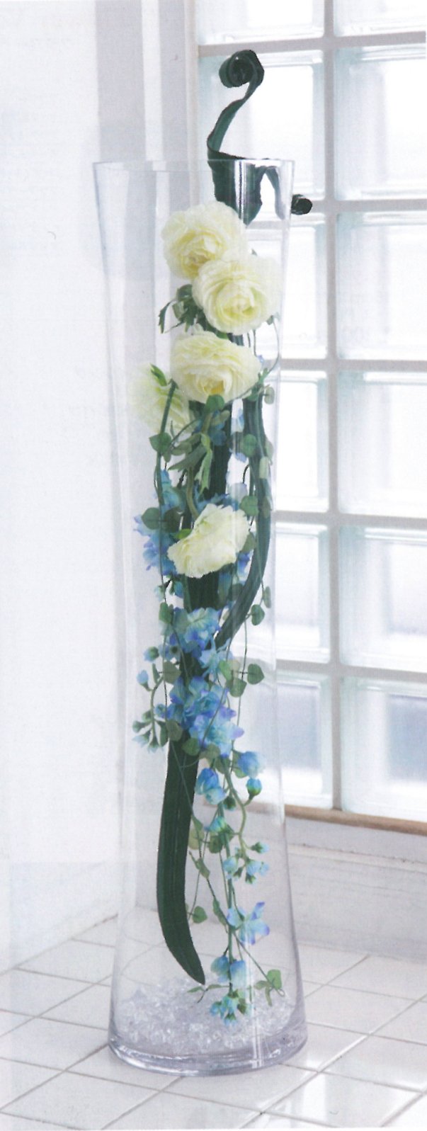 ● Lean of artificial flowers of Green White Ranunculus