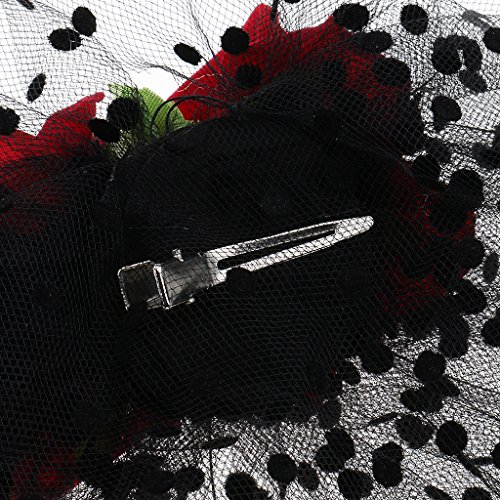 - Fascinator woman headpiece with polka dots veil and rose flower decorations
