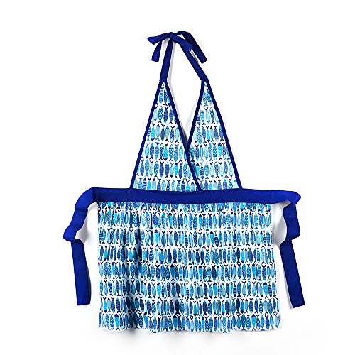 TWO'S COMPANY GALENE COTTON VOILE FISH PATTERN FULL APRON, BLUE