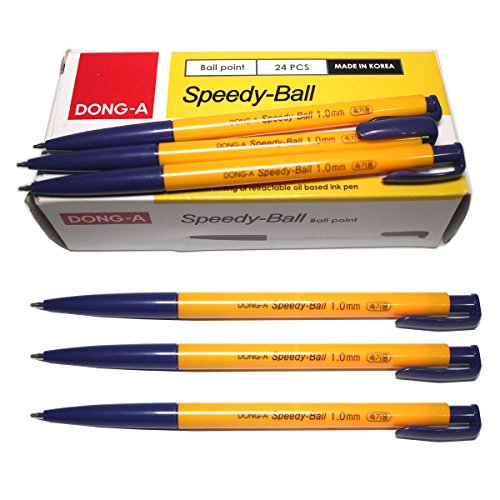 -. Title : Dong-a Speedy-Ball 1.0 mm Smooth Writing Retractable Oil Based Ink Ball Point Pen Dozen Box (Pack of 24) - Blue
