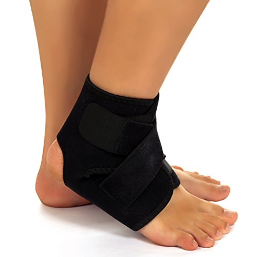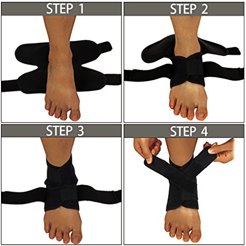 -. Feature : FIRM & RELIABLE support for acute injuries such as muscle strain, ligament sprain, or stabilizing weakened ankle joints following surgery / ATHLETE FRIENDLY open-heel design enables a broad range of motion while bracing the plantar flexion, talocrural joint, and Achilles tendon; ideal for injury prevention during running, or playing basketball, football, or rugby / SIMPLE & EFFECTIVE high-grip crisscross Velcro straps attach anywhere along the entire sleeve to provide customized tightness and bracing to individual needs / QUALITY BREATHABLE NEOPRENE is latex free & boosts localized blood circulation and provides soothing warmth, accelerating the body's natural recovery; perforations ensure breathability, meaning it can be worn comfortably underneath socks against the skin throughout the day / VERSATILE DESIGN fits either the left or right foot up to 12" in arch circumference