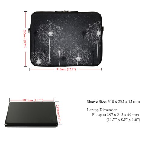 -. Binding : Personal Computers -. Brand : Meffort Inc -. Feature : Hydrophobic (water resistance) neoprene material, w. reinforced dual zipper to secure your device / High quality printing on both side of the bag with laptop edge guard / Fits laptop size up to 12". Fits laptop dimension up to: 11.5" (290mm) x 8.5" (215mm) / Item can be use as shoulder bag w. strap in use or can be use as carrying bag (Hidden Handle) or Sleeve / Note: zipper will not close fully when handle is in use, but it doesn't affect functionality -. Label : Meffort Inc -. Manufacturer : Meffort Inc -. ProductGroup : PC Accessory -. ProductTypeName : CARRYING_CASE_OR_BAG -. Publisher : Meffort Inc -. Studio : Meffort Inc -. Title : Meffort Inc® 11.6 Inch Neoprene Laptop Sleeve Bag Carrying Case with Hidden Handle and Adjustable Shoulder Strap