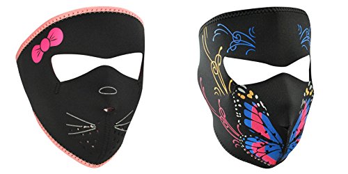 -. Feature : This Product is a 'Bundle' of 2 Neoprene Face Masks identified as a 'Kitty Cat' and a 'Butterfly Mouth' / The First Facemask is the ZanHeadgear 'Kitty Cat', Child / Kid Sized, Full Face Neoprene Face Masks / The Second Facemask is the ZanHeadgear 'Butterfly Mouth' Full Face Neoprene Face Masks / These Face Masks / Ski Mask are made of Durable, Naturally Warm & Water Resistant Neoprene Face Mask Material / The Mask Sizes are adjustable, by up to 2 inches, using the Hook & Loop closure, located at the back of the head