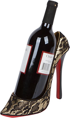 Hilarious Home LACE-BLGLD High Heel Wine Holder, Black and Gold