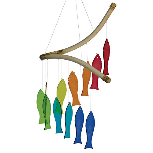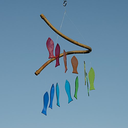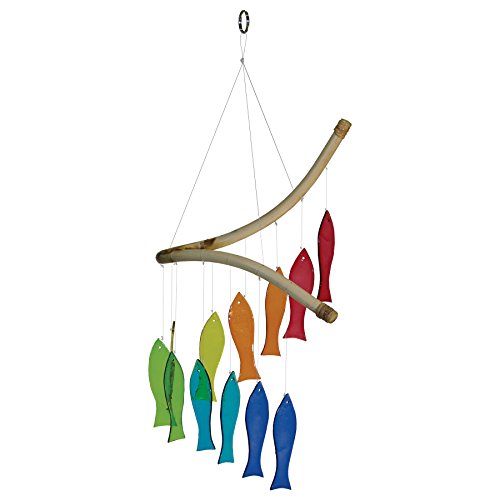 In the Breeze Item #7009 - Rainbow Fish Glass Mobile Wind Chime. This COLORFUL SUNCATCHER makes a unique outdoor decoration.