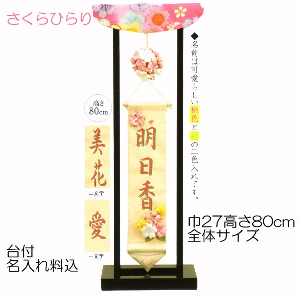 名前旗 名入れ旗 雛人形 タペストリー 命名旗 さくらひらり 巾27高さ80cm(全体サイズ)