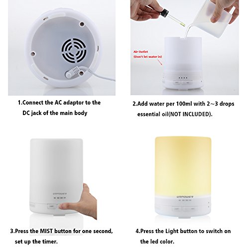 5 in 1 FUNCTIONS: Aromatherapy Diffuser, Humidifier, Air Purifier, Ionizer, Night Light.