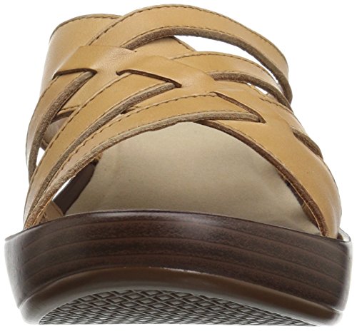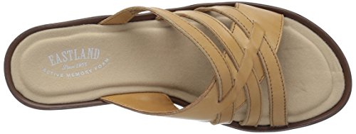 Platform sandal featuring crisscross leather straps and Active Memory Foam footbed