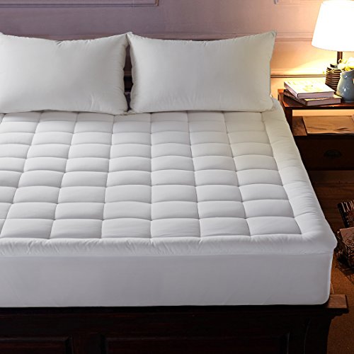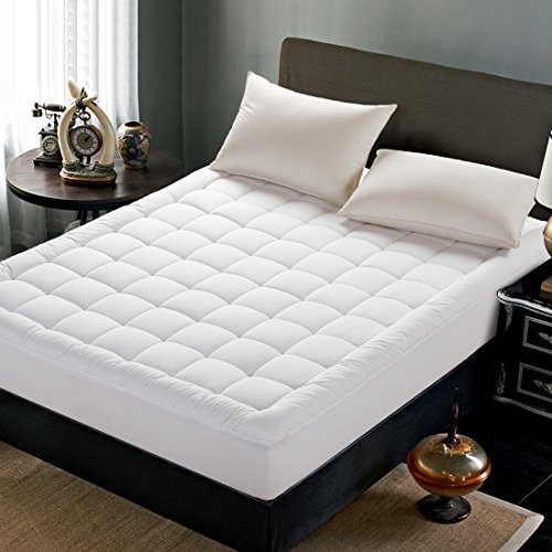 -. Title : Mattress Pad Cover with 18” Deep Pocket Overfilled White Bed Topper By WarmHarbor Mattress Topper (Down Alternative, Queen)