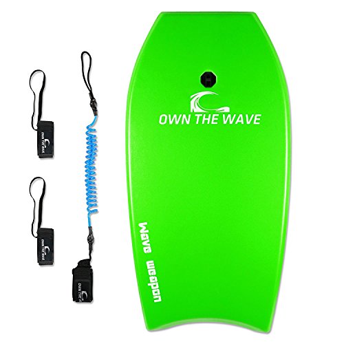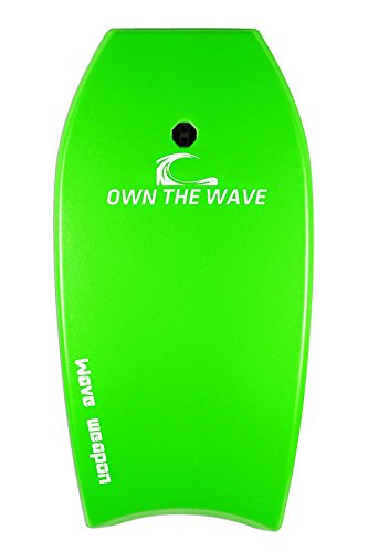 -. Feature : The 'Beach Attack Pack' comes with a Super lightweight Own the Wave 'WAVE WEAPON' Body Board, plus Own the Wave's fantastic PREMIUM coiled bodyboard leash ($16.99 on its own), plus a set of fin tethers to make sure you don't lose your swim fins in the waves. PLEASE NOTE: Leash and Fin Tethers will be at the very bottom of the board wrapped in a tight bundle underneath the plastic wrapping. / The WAVE WEAPON Body Board is amazingly light and features a high speed slick bottom surface, an EPS core, bottom rear channels for great performance and a crescent tail to further help performance. Just choose your colour! The Premium leash included will keep your board attached to you at all times and is super comfortable, as are the fin tethers included to look after your precious swim fins. / You will be receiving your purchase together with P.R.Inted instructions written by us (with photos of course!) on how to install your leash and use your fin tethers. We'll also tell you how to look after your WAVE WEAPON Body Board by leaving the board 'white side up' when in the sun. (This is the same for ALL 'soft' surfboards, Body-boards and SUP's as this stops air pressure building up within the board). / Buy with complete confidence, as all our products are stored and shipped quickly and reliably to you. All Own the Wave products are 100% guaranteed -- if it doesn't deliver what it is supposed to at any time within 12 MONTHS of purchase, it will be replaced or you'll be refunded -- your choice! / Thank you for looking at a product from our store, Surf and Snow Warehouse. We are a small family business that ONLY sells what we know and love -- water sports gear. We know our products, use our products, and stand behind them 100%. We are known for the great product support, advice and after-sales service we provide -- so if you have ANY questions about any of our products, please just ask.
