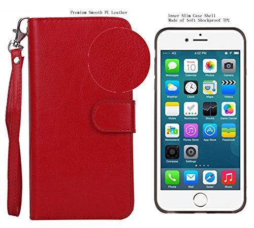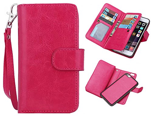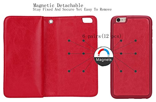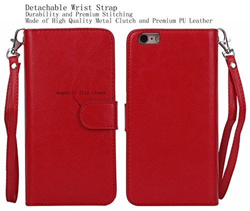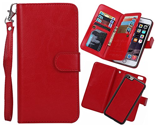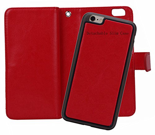 iPhone 6 plus/6S plus 2 in 1 Wallet Case,Hynice Folio Flip PU Leather Case Magnetic Detachable Slim Back Cover Card Holder Slot Wrist Strap wallet for iPhone 6 plus/6S plus 5.5 "(red)