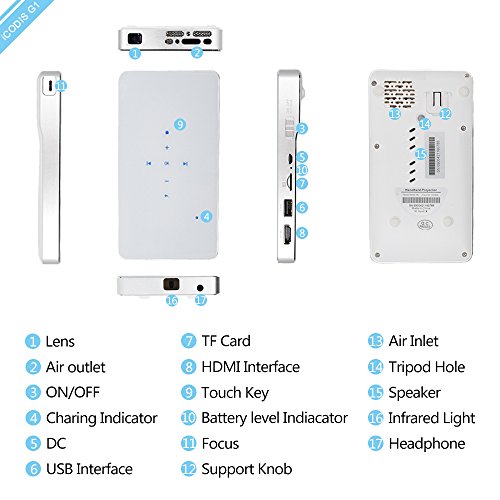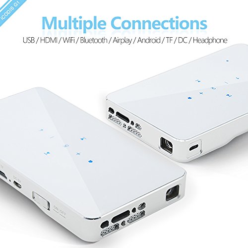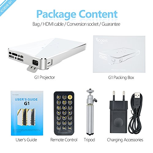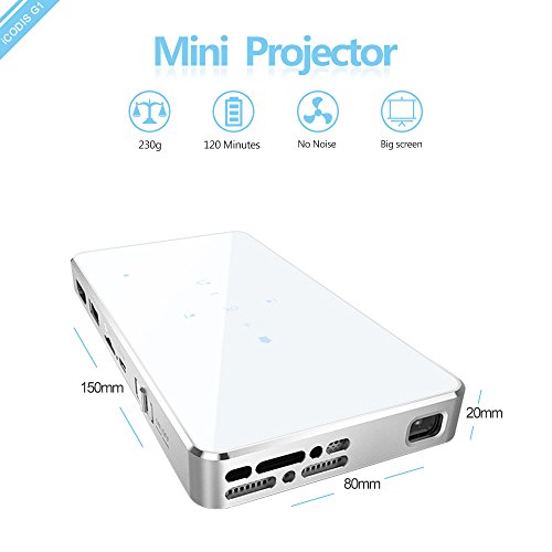iCODIS G1 Mobile Pico Projector, DLP Home Theater, HDMI & WIFI Wireless Connectivity, Portable Mini Size & 120" Display, 30,000 Hour LED.(Sliver)