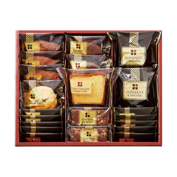 ●ショコラクレープ(ダーク・ホワイト)×各5、カフェモカマドレーヌ×3、フォンダンショコラ・ベイクドショコラ・ニューヨークブラウニー×各2、ホワイトショコラパウンドケーキ・ショコラエスプレッソパイ×各1
