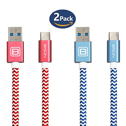 -. Title : [2 Pack] Bison USB 3.1 Type C(USB-C) Nylon Braided Cable & 3A Fast Charging [USB-IF/CE/FCC Certified] (3.3ft) for Samsung Galaxy Note 8 S8,S8+,MacBook,Google Pixel,Huawei,Nexus (Red & Blue)