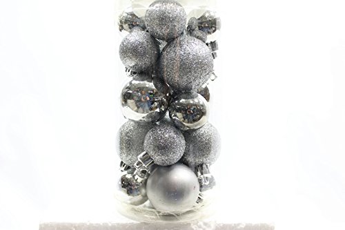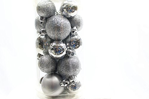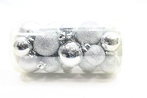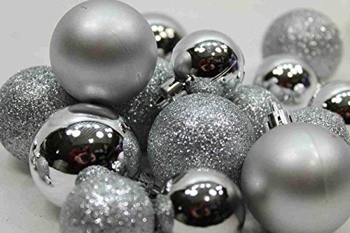 20 Holiday Time Mini Shatterproof Satin Shiny and Glitter Finish Bulb Christmas Ornaments (Silver)