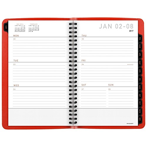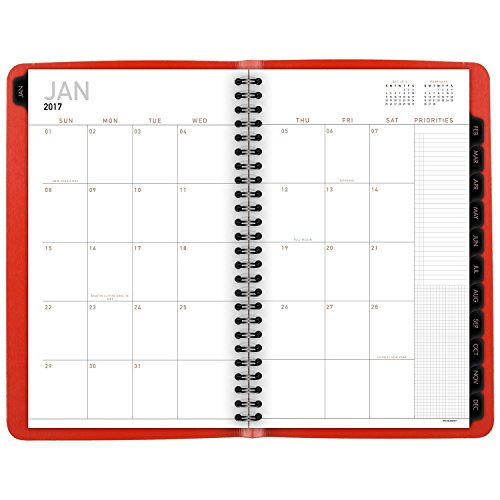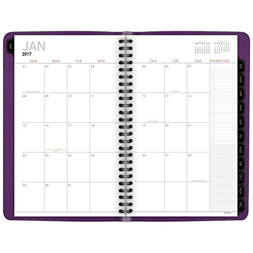 -. Feature : AT-A-GLANCE Contemporary Fashion Weekly / Monthly Planners help you balance work and home life all year long and cover 12 months(Jan through Dec). Please note color choice is not available to customer, the color will be selected at random for you. / One week per two page spread features open scheduling Monday through Sunday and ruled daily blocks include a ruled daily P.R.Iorities section Monday through Friday. Ruled notes section on the bottom of the right hand page of every weekly spread. / One month per two page spreads include unruled daily blocks to keep scheduling clear and organized and ruled P.R.Iorities and notes space along right margin. Monthly calendars are tabbed to make it easy to quickly turn to any date. / Monthly spreads feature past and future months reference calendars in top left corner and the weekly spreads include past, current and future month's reference calendars across the bottom of the left hand page for quick and easy date checking / Special pages sections includes 3-year overview reference calendar, future planning, important dates, notes, meeting notes, and contacts to help you can keep track of all of life's details in one convenient location