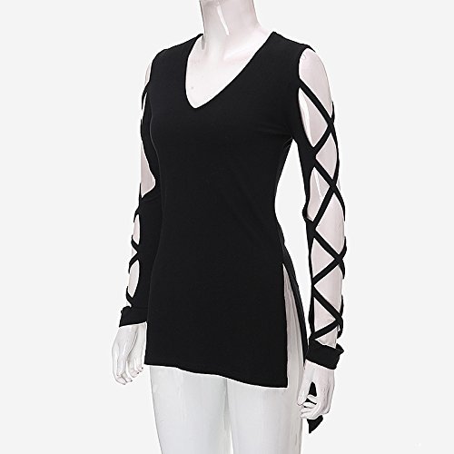 -. Binding : Apparel -. Brand : Sophia17 -. Department : womens -. Feature : Material: Polyester / V-neck long sleeves cross strap hollow cut out side split / High-low hem with split design / Hand wash ,or low temperature for machine washing. / All size is Asian size, not US size. Detailed size please see Product Description. If you have any question, please e-mail us. -. ProductGroup : Apparel -. ProductTypeName : SHIRT -. Title : Sophia17 Women Sexy Cut Out Hollow Long Sleeve Split V Neck Bandage T Shirt Tops