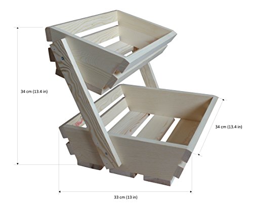 Wide and spacious two tiered stand that stores plenty of both fruits and vegetables (bottom tray 13.4" x 13", top tray 13.4" x 8.3").