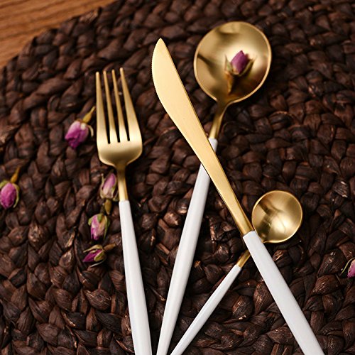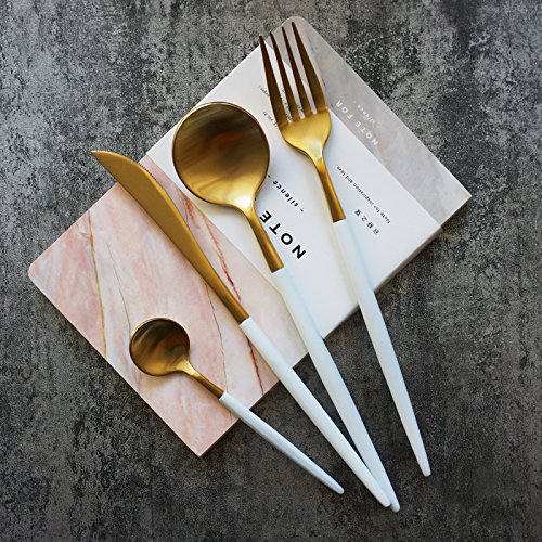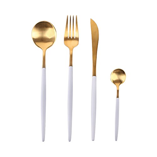 Richday Stainless Steel Flatware Set for Home Kitchen Restaurant Hotel (White + Gold)