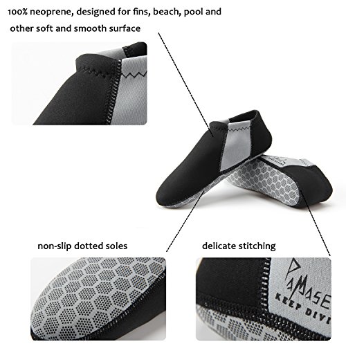PAMASE 3mm Neoprene Snorkeling Water Fins Socks - Perfect for Beach Diving Swimming Surfing - Low Cut-M