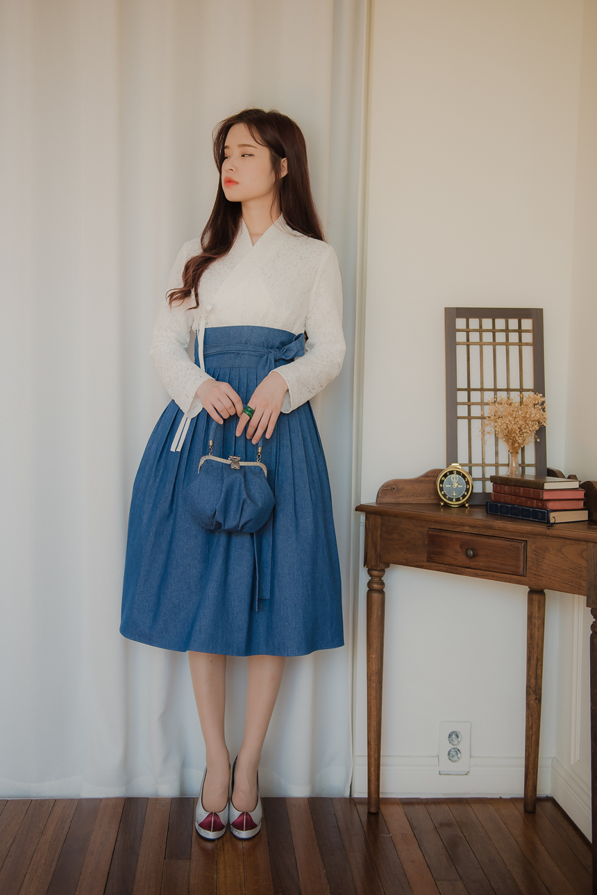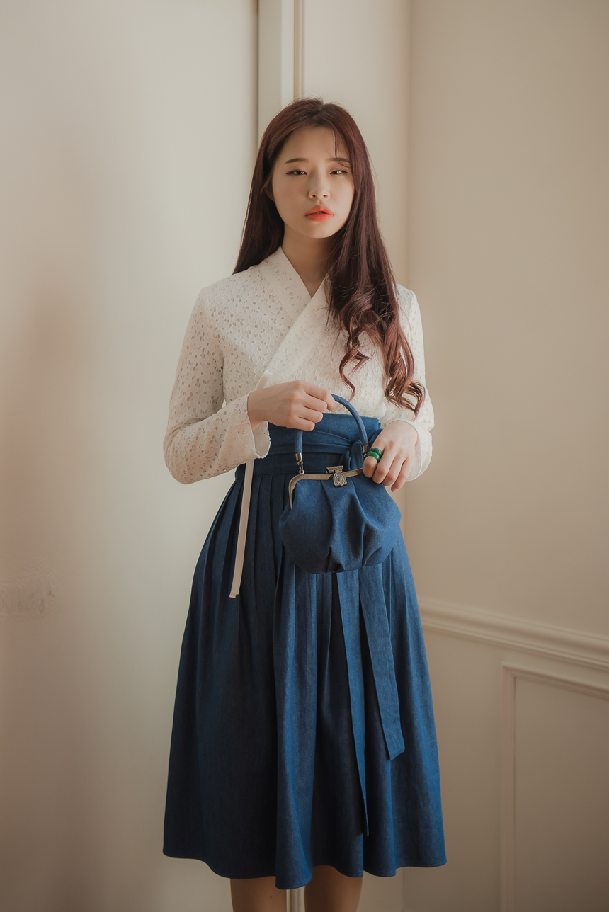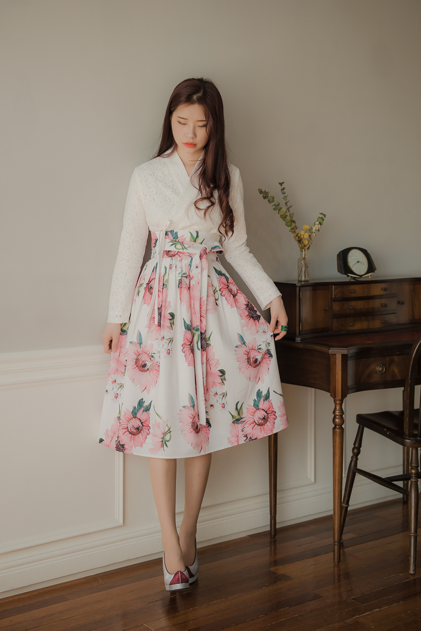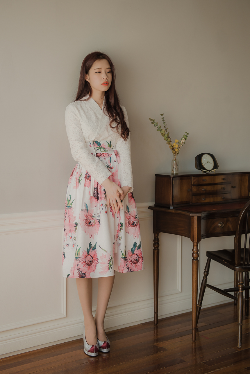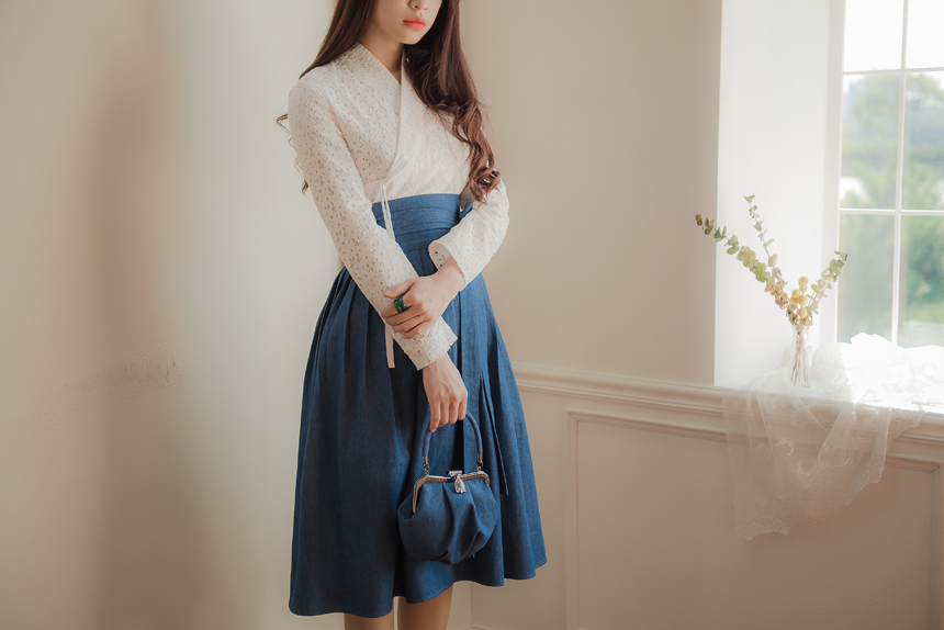 우아하고 여성스러운 레이스 원단의 장점과 한복이 가진 디테일을 살리면서