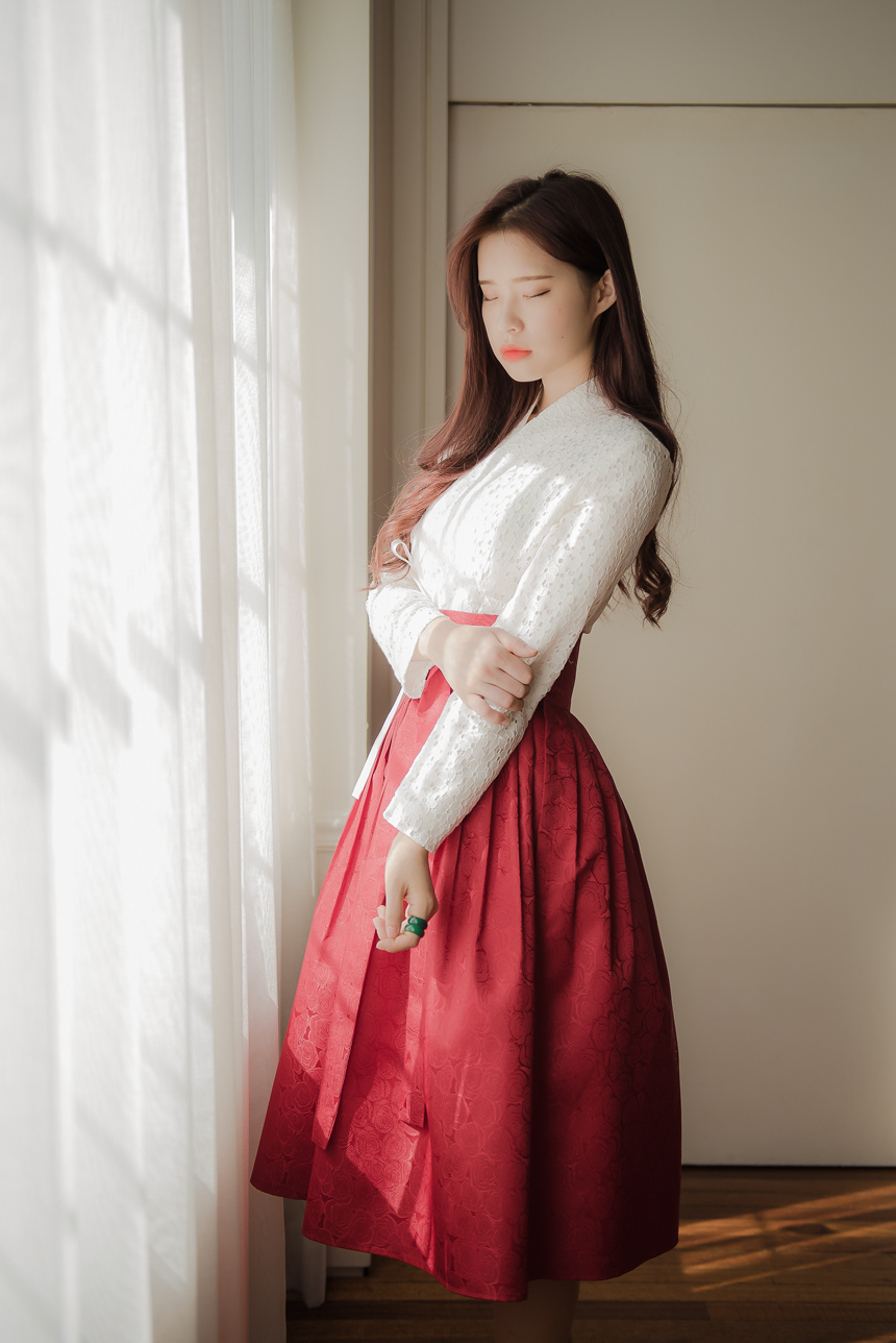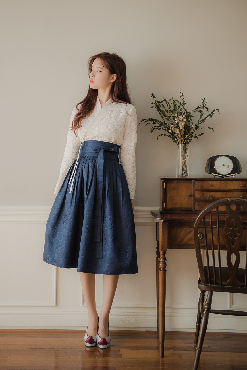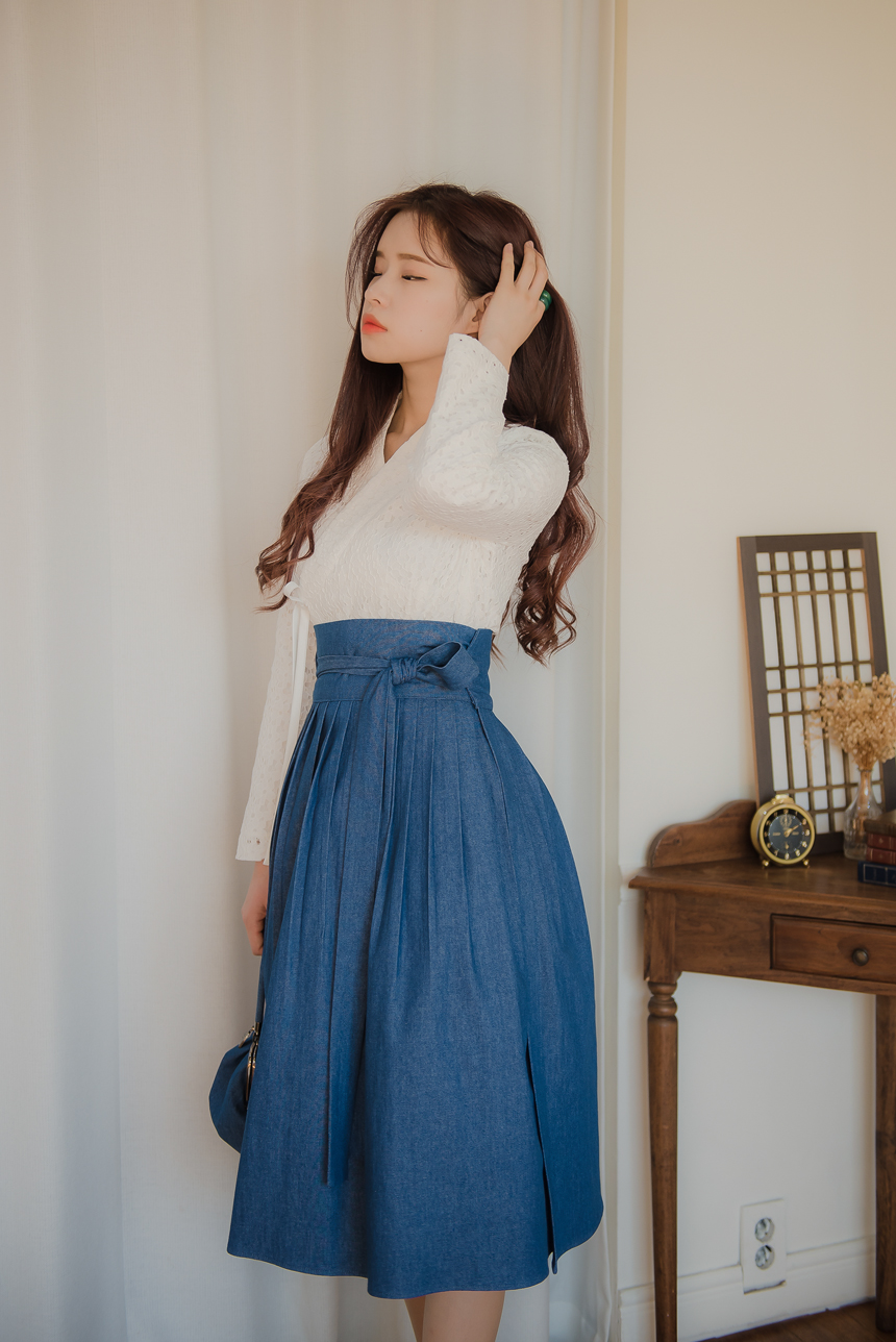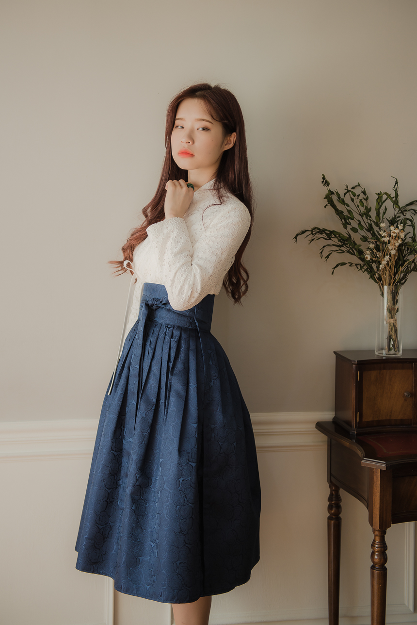 우아하고 여성스러운 레이스 원단의 장점과 한복이 가진 디테일을 살리면서