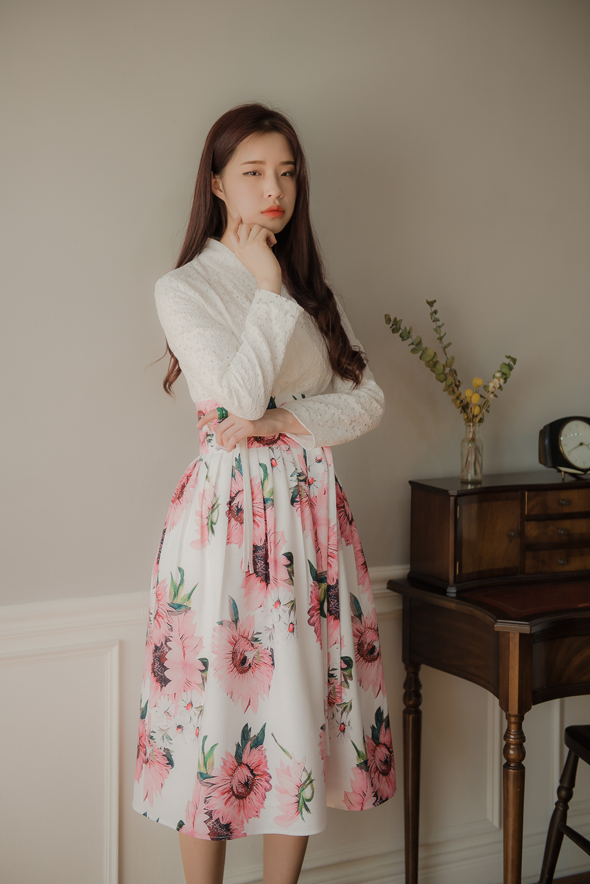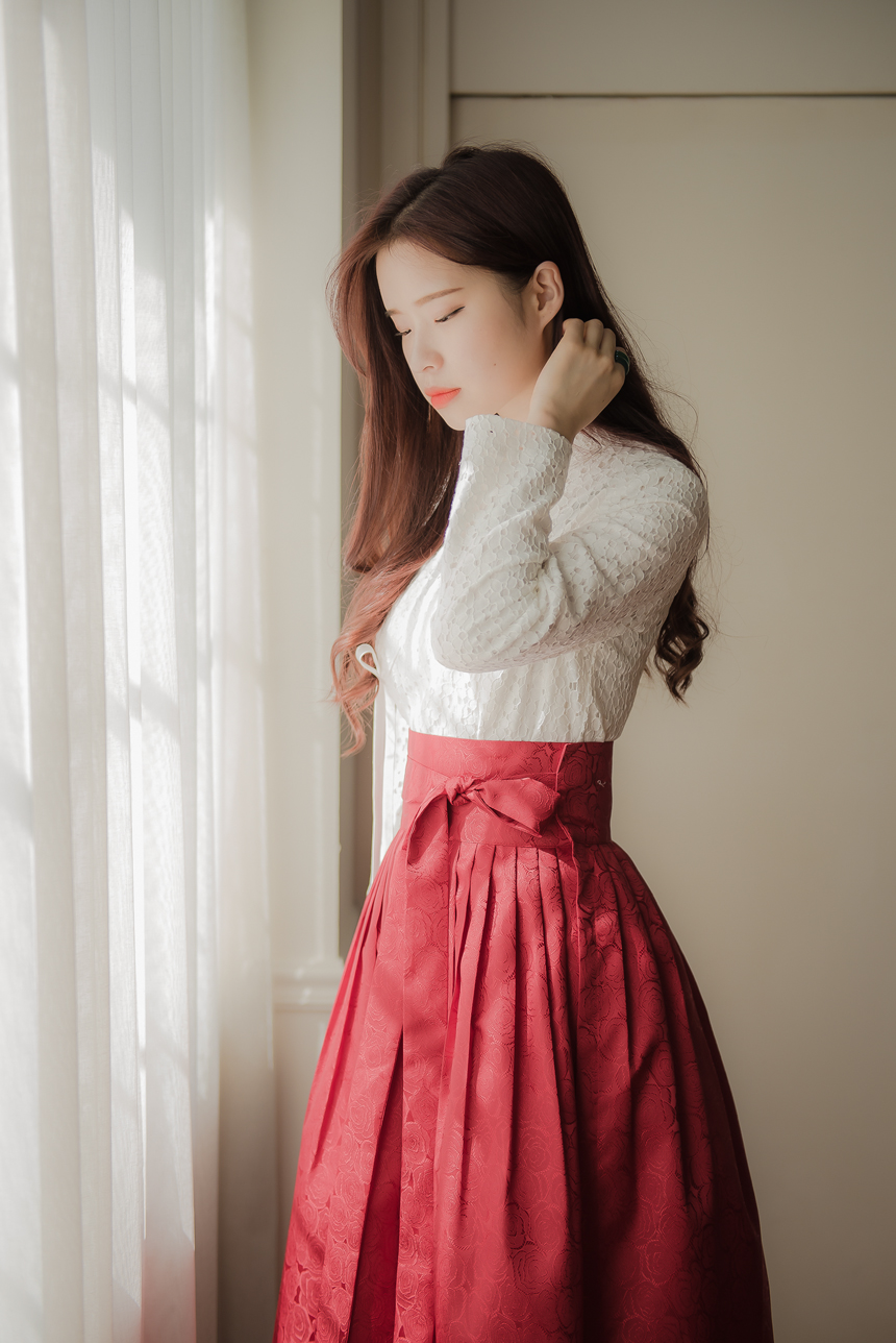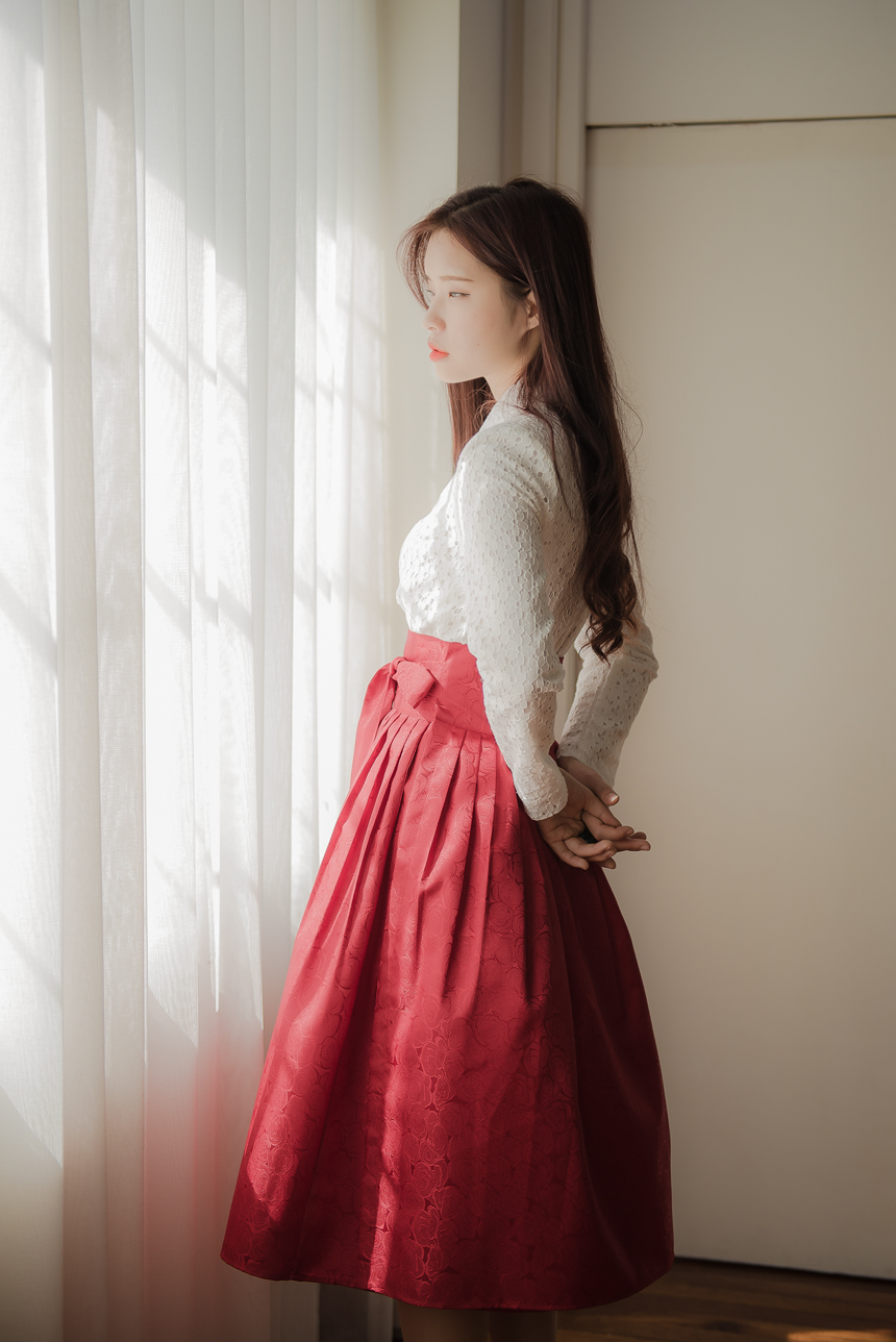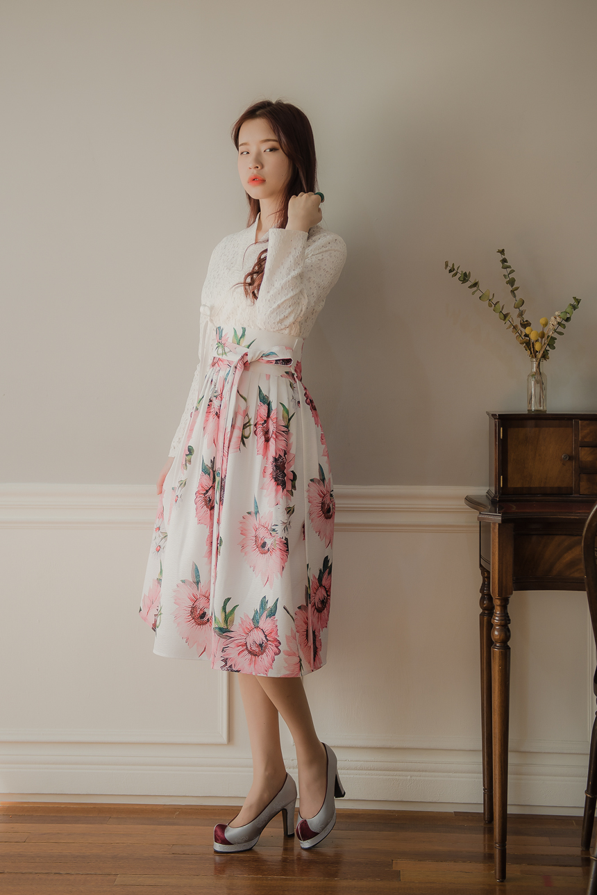 우아하고 여성스러운 레이스 원단의 장점과 한복이 가진 디테일을 살리면서
