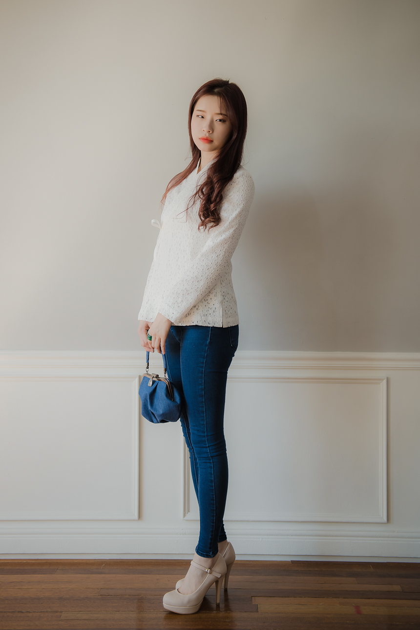 저희 꽃닮의 여러디자인 허리치마와 함께 코디하시면 깨끗하고 고급스러운 데일리 한복룩으로 추천드려요.