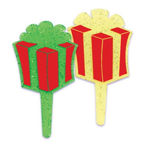 Dress My Cupcake DMC41X-356 12-Pack Presents Glitter Pick Decorative Cake Topper, Christmas, Assorted