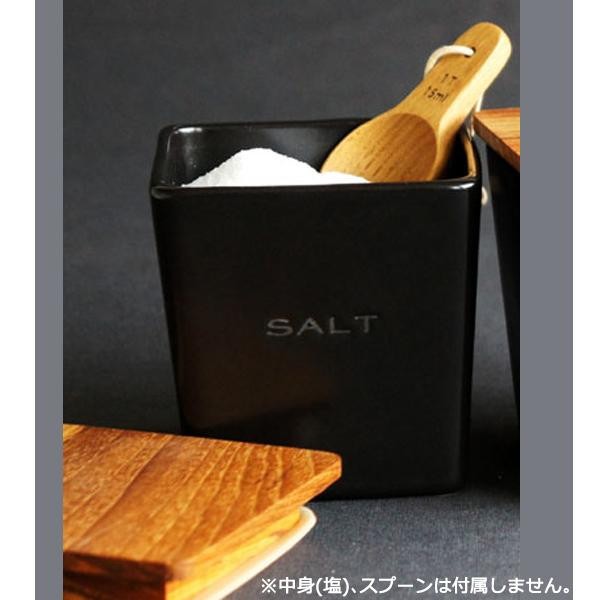 | すっきりとした陶器の美しさと、本チークの組み合わせが絶妙な塩入れキャニスターです! |